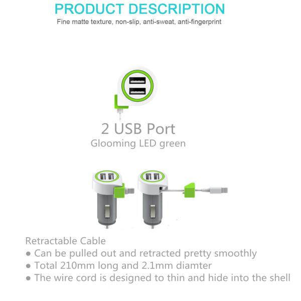 This is a portable car chargers designed for Sepcial designed for iphone, Lightning cable space saving. Excellent design with LED ring makes it effortless to find the charging port in the dark. The advanced lighting car charger cables design without finding cable hassles.